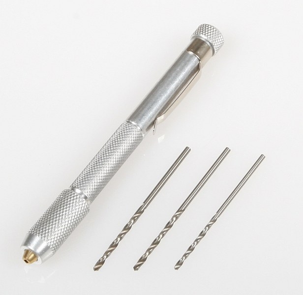 Ruční vrtačka pro jemnou práci se třemi vrtáky.