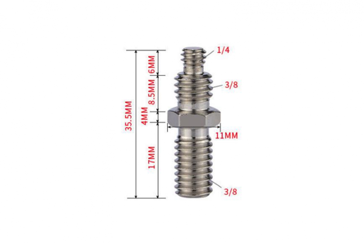 Adaptér šroubu 1/4" na 3/8" je vyroben z železa s niklovým povrchem pro zvýšenou odolnost proti korozi. Váží 1,7 g a umožňuje snadné propojení příslušenství s různými závity. Kompaktní a praktický doplněk pro váš foto či video set.
