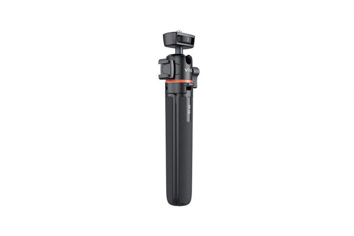 2v1 stativ a prodlužovací tyč (54 cm) vyrobený z ABS a hliníkové slitiny. Váží 188 g, rozměry ve složeném stavu jsou 5,6 × 3,6 × 21 cm, délka nastavitelná od 21 do 54 cm. Součástí jsou cold shoe a 1/4" šroub pro snadné připevnění kamery nebo příslušenství. Umožňuje nastavení více úhlů pro flexibilní natáčení a fotografování. Ideální pro stabilní a všestranné použití.