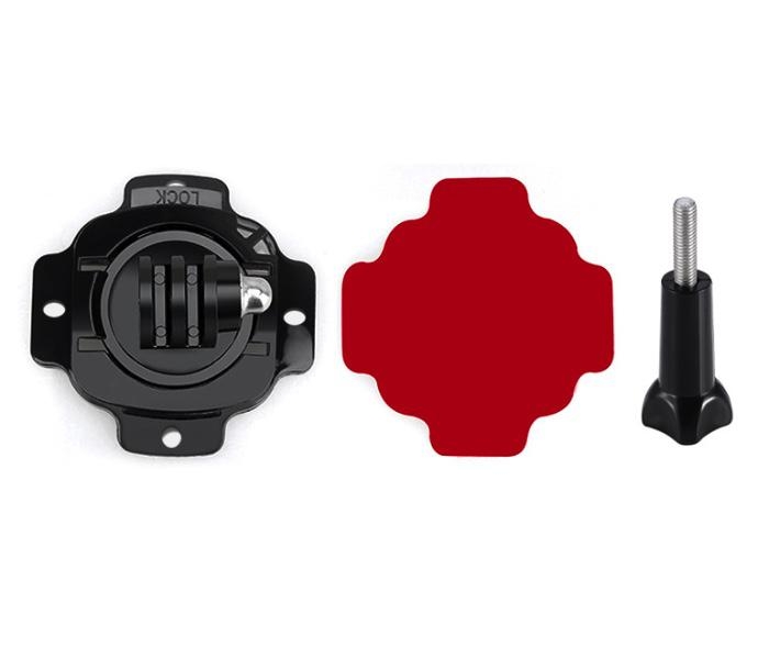 360° držák na helmu pro akční kamery s hmotností 28 g a rozměry 55 × 55 mm. Umožňuje plnou rotaci o 360° pro flexibilní úhel záběru při různých aktivitách. Ideální pro cyklistiku, motokros, snowboarding a další sporty, kde je potřeba zachytit záběry z první osoby. Snadno připevnitelné na helmu, lehký a kompaktní design pro pohodlné použití.