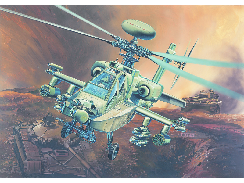 Plastikový model Academy 12268 - letadlo Boeing AH-64D Longbow v měřítku 1:48 ke slepení. Obtížnost 3, průměr rotoru 305 mm.