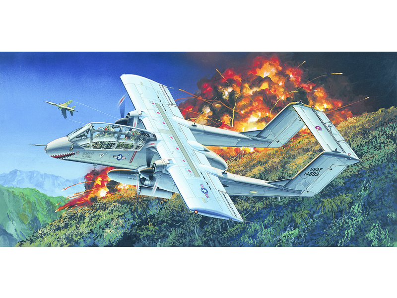 Plastikový model Academy 12463 - letadlo North American Rockwell OV-10A v měřítku 1:72 ke slepení. Rozpětí 168 mm.