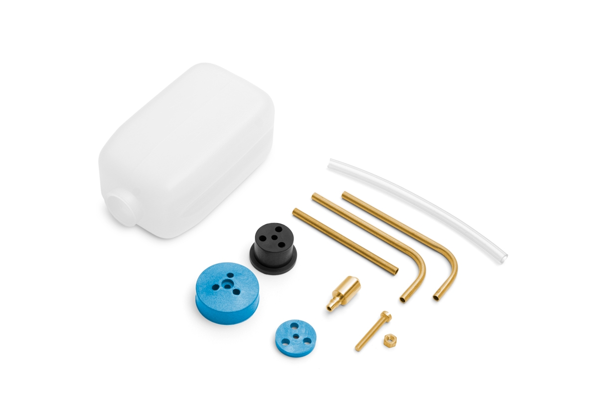 Lehká ale pevná nylonová nádrž 110 ml pro žhavící palivo s odolným víčkem, gumovou zátkou a opěrnou deskou. Předohýbané mosazné fitinky a sací závaží, silikonová hadička. Rozměry (bez hrdla a víčka): 81x50x37 mm, hmotnost: 34g.