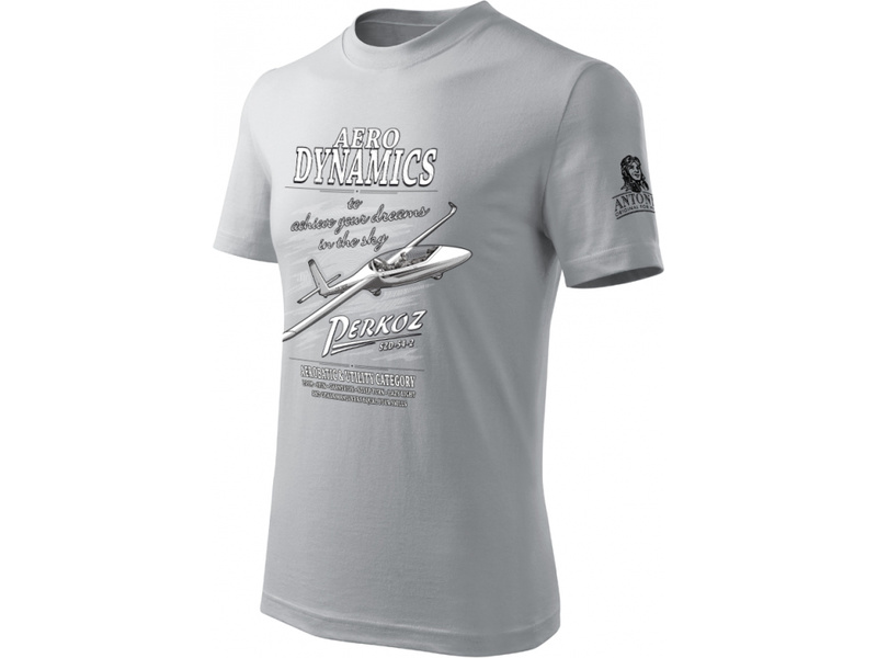 Pánské tričko s potiskem větroně SZD-54-2 Perkoz. Krátký rukáv, 100% bavlna se silikonovou úpravou je zárukou příjemného pocitu při nošení. Látka 200 g/m², pleteno single jersey, bílá barva, luxusní dárkové balení.
