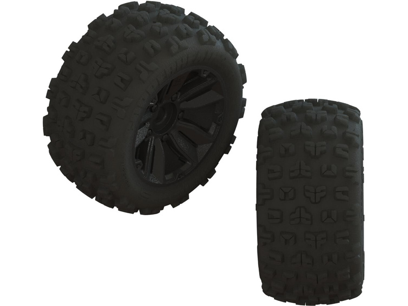 Disky jsou opatřeny vícepaprskovým stylovým designem a zvýšenou pevností. Pevný nylon má vysokou odolnost na všech površích. Černá barva pro stylový vzhled ARRMA. 17mm unášecí šestihrany mají super pevnost při extrémní jízdě. Vložky s vysoce kvalitní pěnou jsou vynikající podporou pro běhoun pneumatiky. Speciálně je navržena tak, aby poskytovala dokonalou rovnováhu pro agresivní přilnavost a snadnou ovladatelnost.