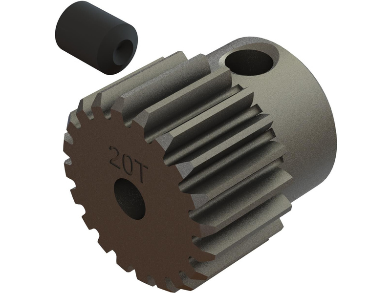 Arrma pastorek na hřídel 2.3 mm s 20 zuby a modulem ozubení 50.8DP (0,5 mm) pro RC modely aut. Vyrobeno z kalené oceli. CNC obráběný. Stavěcí šroub M3 x 4 mm.