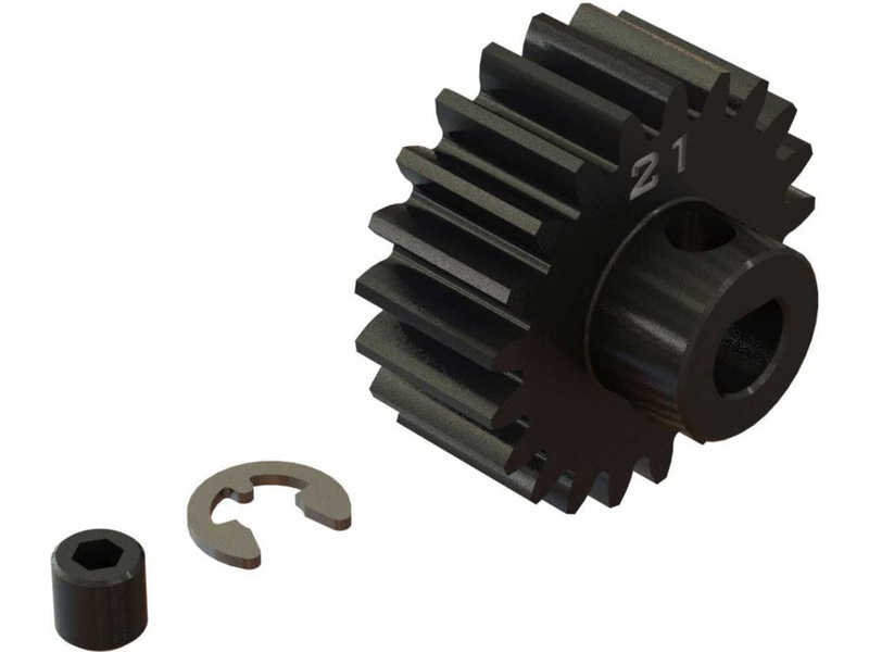 Arrma pastorek na hřídel 5 mm s 21 zuby a modulem ozubení 1 mm pro RC model auta Arrma Kraton 8S BLX. Vyrobeno z sintrované oceli. Součástí balení je červík.