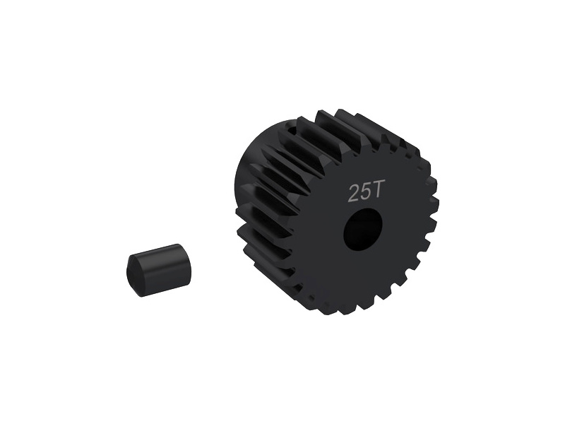 Arrma pastorek na hřídel 3.2 mm s 25 zuby a modulem ozubení 50.8DP (0,5 mm) pro RC modely aut. Vyrobeno z kalené oceli. CNC obráběný. Stavěcí šroub M3 x 4 mm.
