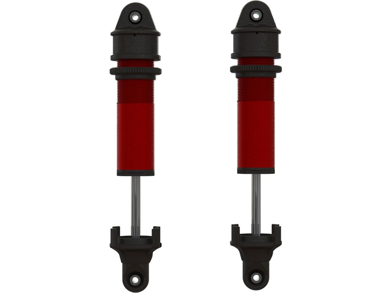 Arrma tlumič kompletní 20x178mm (2) - sestavený, naplněno olejem o viskozitě 700cSt. Robustní hřídel 6mm. Precizně vyrobené červeně eloxované tělo. Hřídel z nerezové oceli. Písty 8 děr s průměrem 1,4 mm. Připraveno pro osazení pružinami. Matice pro nastavení předpětí pružin.