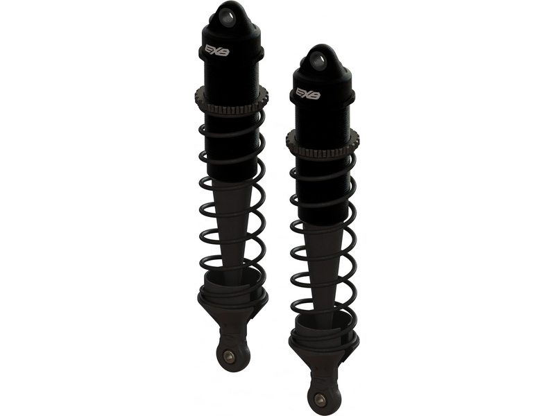 Arrma tlumič hliníkový sestavený (2): vrtání 16mm, délka 134mm, píst 8x1.3mm, olej 1300cSt, pružina: 0,97N/mm, pístnice 4mm. Černé eloxování. Nastavovací matice předpětí pružin.