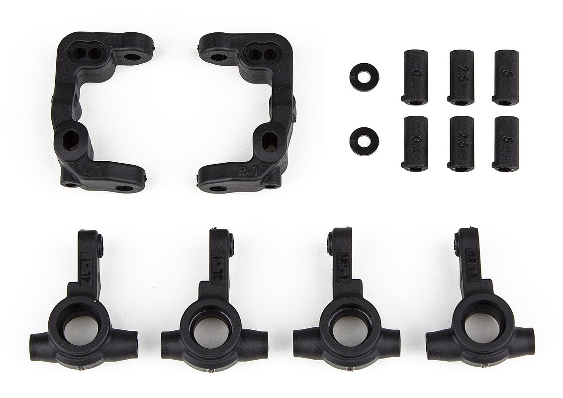 - B6.4 -1mm plastové náboje kol a přední držáky nábojů řízení včetně vložek, 2+2+2 ks.
