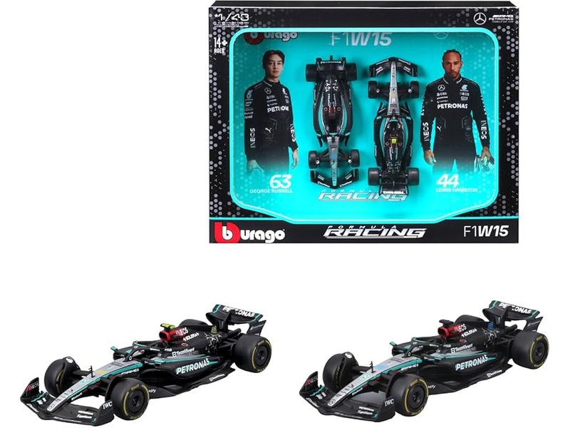 Bburago Mercedes-AMG F1 W15 (2024) 1:43 (dárkový set 2ks)