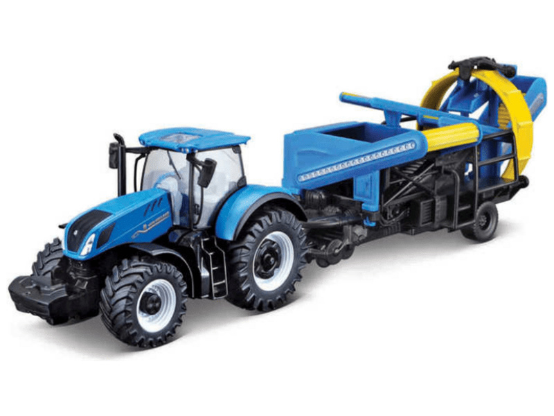Model Bburago 18-31678 - traktor New Holland T7.315 s přívěsem je vyrobený z kovových a plastových dílů. Model traktoru má detailní provedení. Na zadní závěs se připojí kultivátor. Traktor je přibližně 10 cm velký.