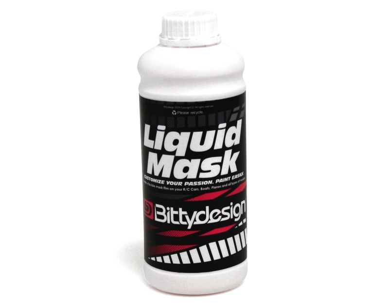 Maskovací kapalina BittyDesign v balení 1000 g. Určeno pro maskování lexanových karoserií. Lze nanášet airbrush pistolí s tryskou 1,4 až 1,7 mm pod tlakem 3,5 bar ve dvou vrstvách. Lze nanášet i štětcem, který nepouští vlákna, ve třech nátěrech.