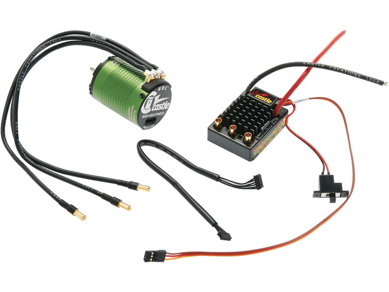 Combo pro Off Road auta 1:10 s napájením 2-3 článkovou LiPol baterií sestává z regulátoru Castle Sidewinder V3 WP a 4 závitového motoru NC1406-5700kv. Sidewinder 3 nabízí špičkové softwarové funkce a USB programování pomocí Castle USB adaptéru (prodává se samostatně).