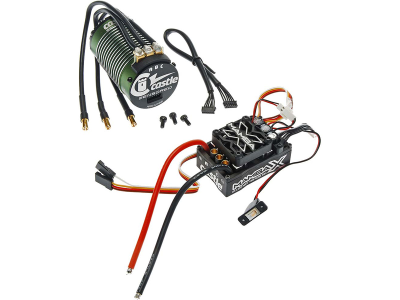 Střídavé kombo se senzorovým motorem Castle 1512 1800ot/V a regulátorem Mamba X, vhodné pro lehčí modely 1:8 do 4 kg, s napájením max. 4S LiPo.