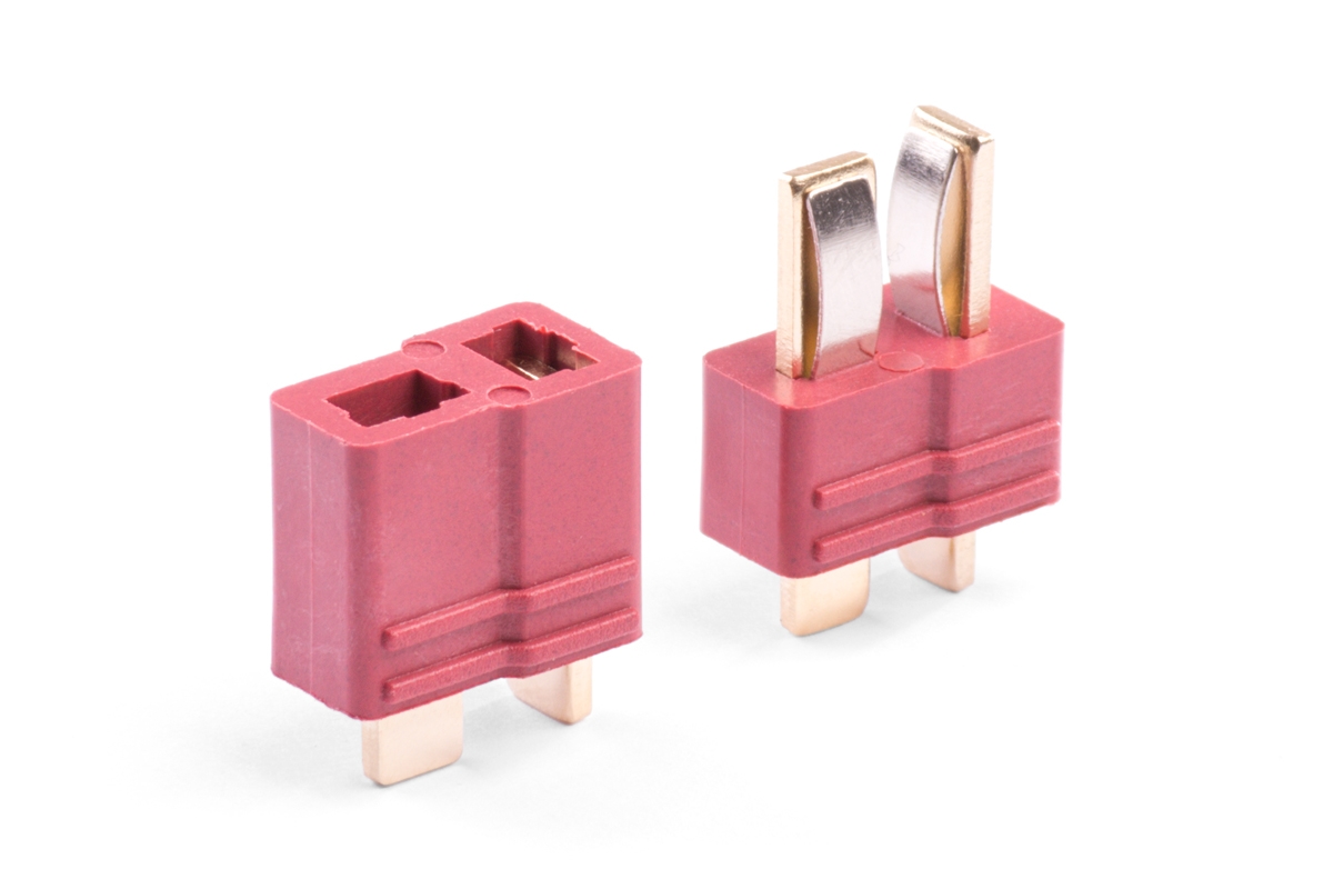 Dvoukolíkový silový konektor s plochými zlacenými kontakty se zatížitelností max. 50 A (dlohodobě 25A) s drážkovaným tělem pro pevnější uchopení. Pro kabely o průřezu max. 3,3 mm2 (12AWG). Přechodový odpor 0,45 mOhm, max. 500 V. Balení 1 pár.