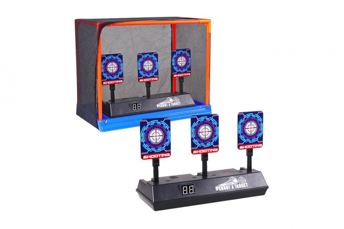 Digitální tréninkové terče, vybavené zvukovým modulem, světelnou signalizací a počítadlem skóre. 391.5gSize: 32 x 21 x26cmWith switch, sound, light and score indicatorUse 3*AA batteries