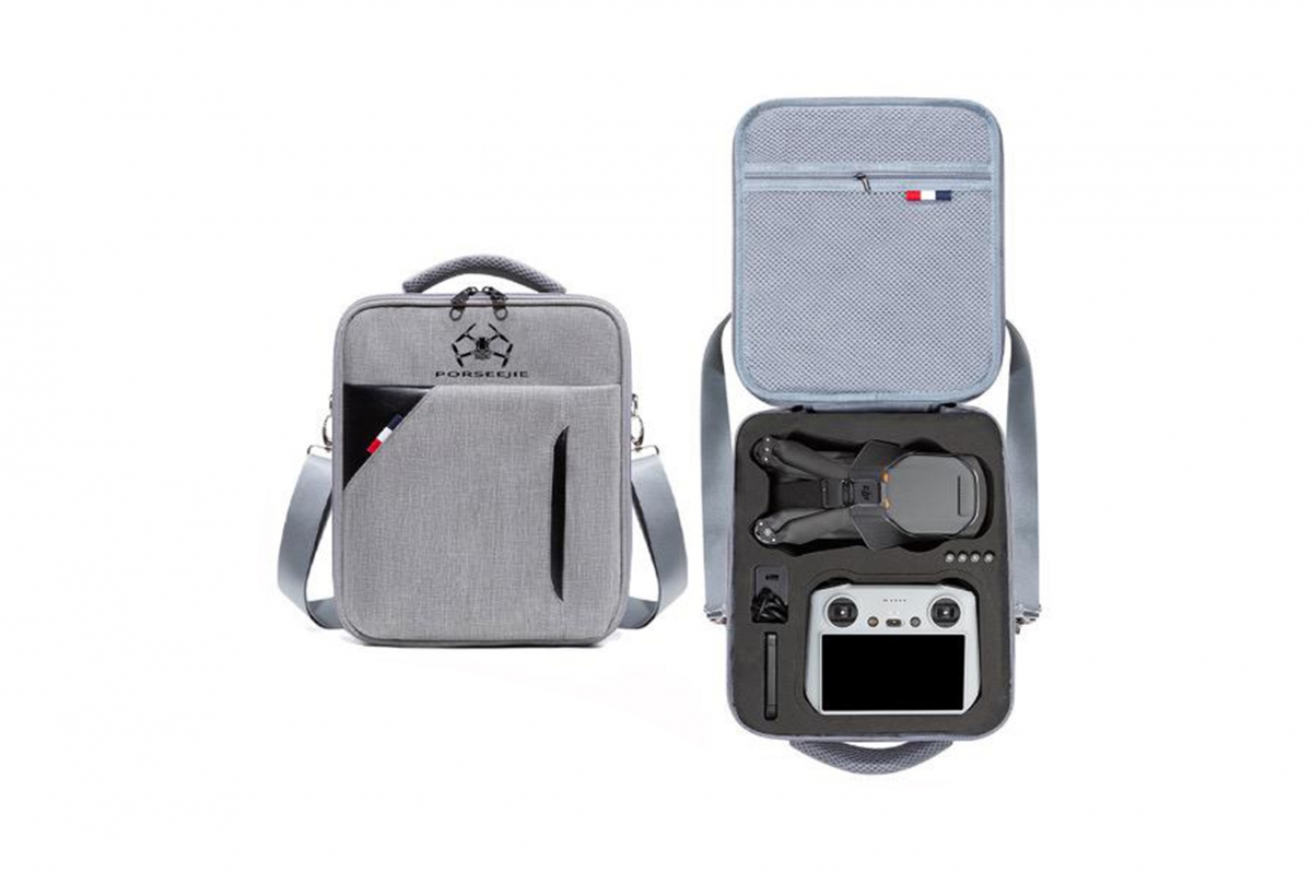 Šedá polyesterová taška na nošení pro DJI Mavic 3 Pro nabízí lehkou a odolnou ochranu. Váží 601 g a má rozměry 31,5 × 11,5 × 26 cm, což poskytuje dostatek prostoru pro dron a příslušenství. Vyrobena z polyesteru a EVA materiálu, je kompatibilní s modely DJI Mavic 3 Pro, Mavic 3, Mavic 3 Classic a ovladači DJI RC-N1, DJI RC i DJI RC Pro. Ideální pro bezpečné a pohodlné přenášení na cesty.