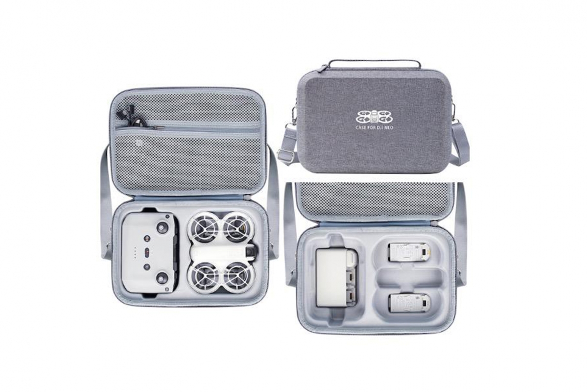 Two-Layer Shoulder Case for DJI NEO (Gray) – Šedé dvouvrstvé pouzdro s ramenním popruhem navržené pro DJI NEO. Nabízí oddělené přihrádky pro dron a příslušenství, pevnou ochranu proti nárazům a pohodlný nastavitelný popruh pro snadné přenášení. Stylové a praktické řešení na cesty i pro každodenní použití. Váha: 437g. Velikost: 29x20.5x10 cmWith Shoulder Strap