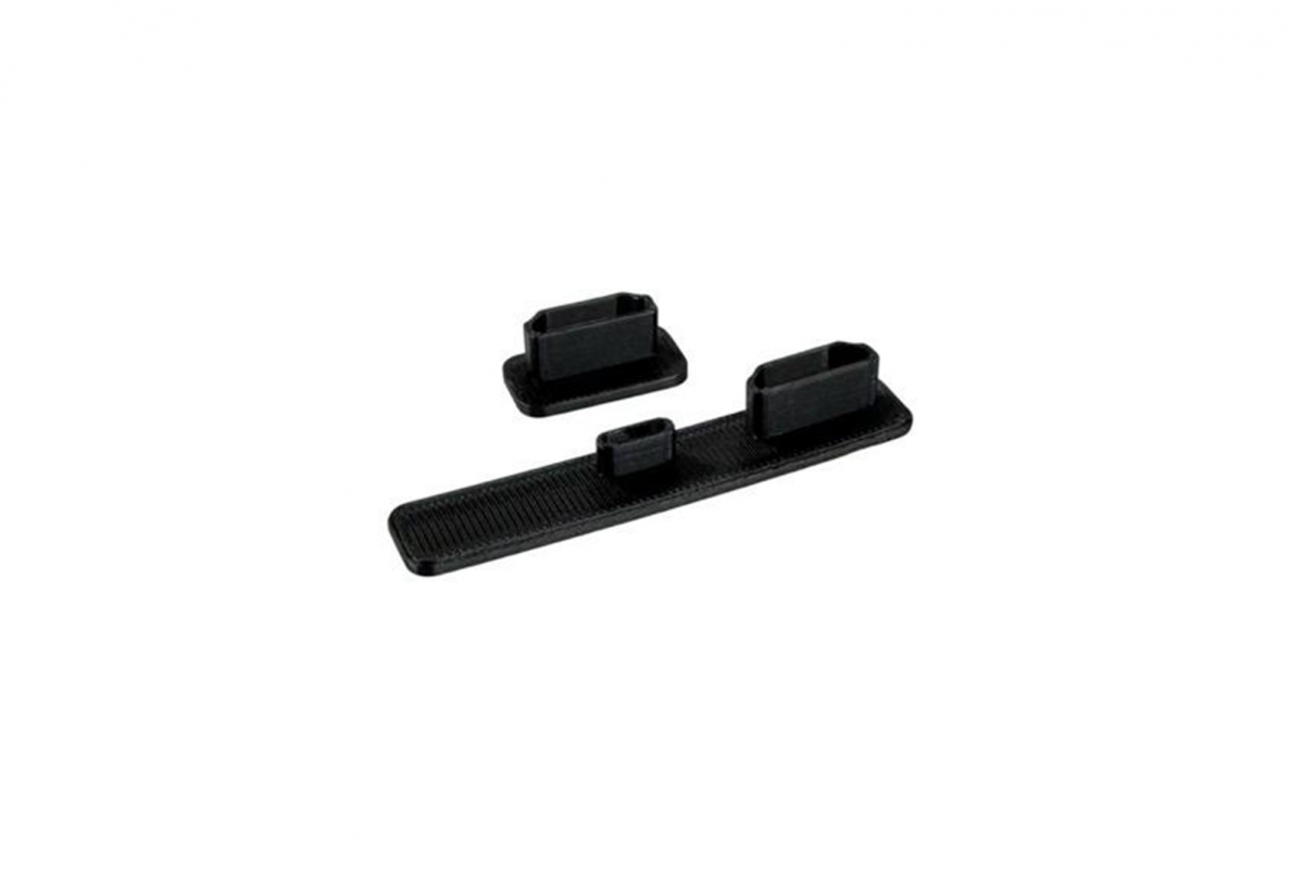 Černý proti prachový kryt z odolné gumy pro DJI RC Pro 2. Lehký (1,5 g) a kompaktní (5,4 × 1 × 0,8 cm), efektivně chrání porty před prachem a nečistotami, prodlužuje životnost zařízení a zajišťuje spolehlivý provoz ovladače.
