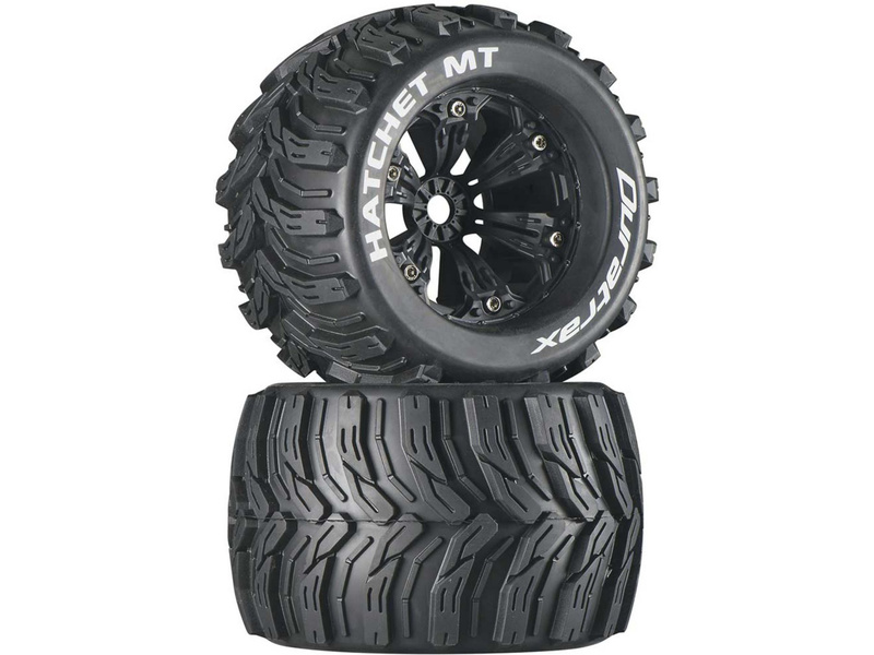 Kompletní kola Duratrax Hatchet 3.8" MT pro RC modely aut. Disk má černou barvu, tvrdost směsi pneumatiky je CS - sportovní směs střední.