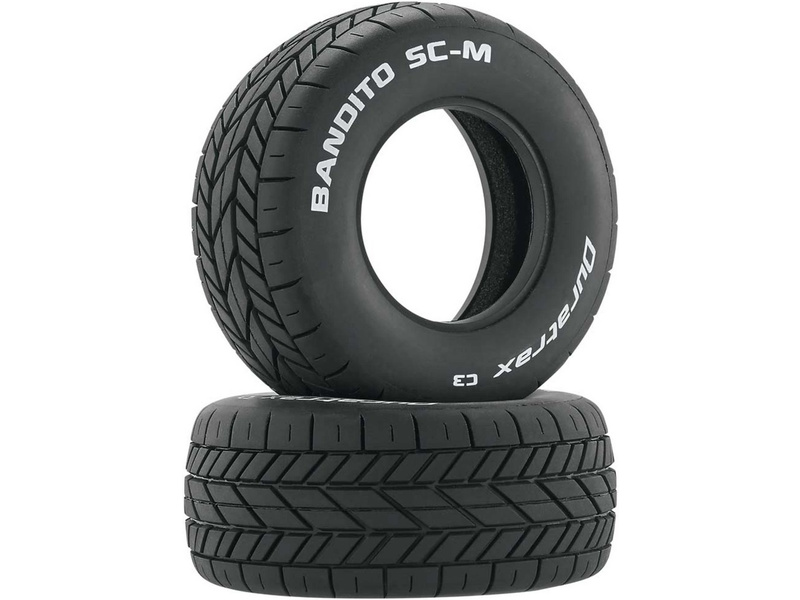 Silniční pneumatiky Duratrax Bandito SC-M. Rozměry: ø102 mm, šířka 43 mm. C2 - měkká směs.