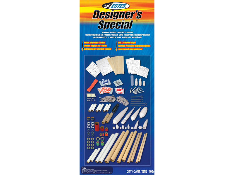 Balení obsahuje: sada více něž 100 dílů pro stavbu až 8 modelů raket Estes. Dvě sady tubusů o průměru 40, 32, 24 a 18 mm, hlavice, kroužky a trubky pro motory, padáky a streamery, příslušenství pro stabilizátory.