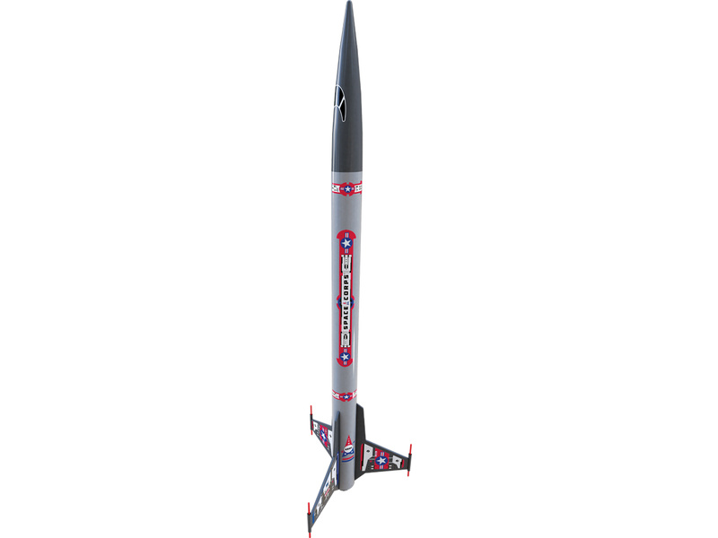 Seznamte se s futuristickou vojenskou raketou třídy Corvette Space Corps. První raketa v nové sci-fi sérii Estes, která může cestovat na vzdálené končiny naší sluneční soustavy téměř rychlostí světla, aby zachytila jakékoli hrozby mimozemské inteligence. Korveta Estes připravená na start do bitvu a s motorem C6-5 stoupá až na 198 metrů.
