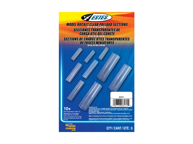 Redukce do trubek modelů raket - Estes - Vložky plastové čiré sada (3 x 3), rozměry BT-20 o průměru 18/18,7mm, BT-50 o průměru 24,1/24,8 mm a BT-60 o průměru 40,5/42 mm.
