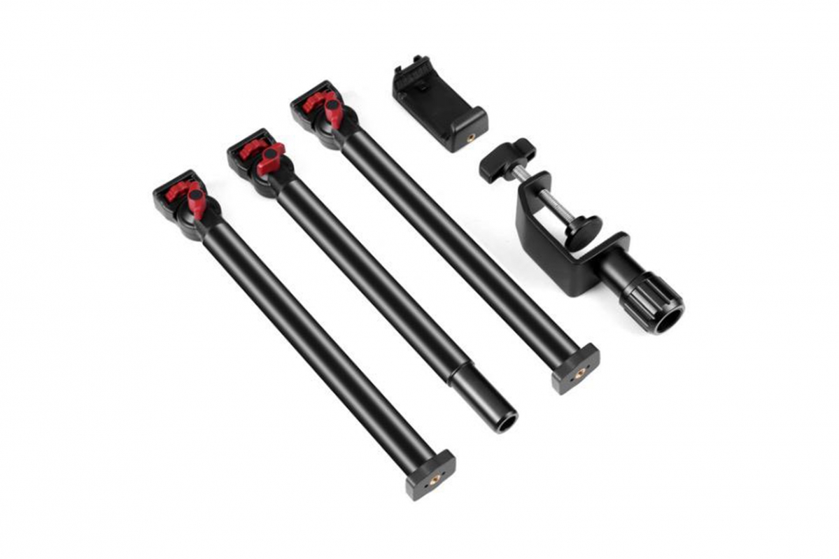 Flexibilní stolní držák pro kamery vyrobený z pevné hliníkové slitiny. Váží 1130 g a nabízí upínací rozsah 0–60 mm s maximální nosností až 3000 g. Součástí jsou tři tyče délky 32 cm a držák pro smartphone s rozsahem 70–180 mm. Ideální pro stabilní upevnění kamer i telefonů při natáčení nebo streamování.