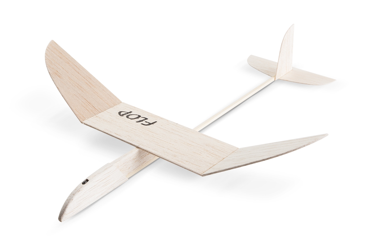 Celobalsové házedlo s velmi jednoduchou stavbou, ideální jako úplně první model, který postavíte během několika desítek minut. Díky přesným CNC vyřezávaným dílům nebudete potřebovat žádné nástroje, pouze acetonové lepidlo (Kanagom, UHU-hart apod.) a špendlíky. Vzhledem ke kapesním rozměrům si s Flopem skvěle zalétáte kdekoliv, třeba na nedělní odpolední vycházce do parku.