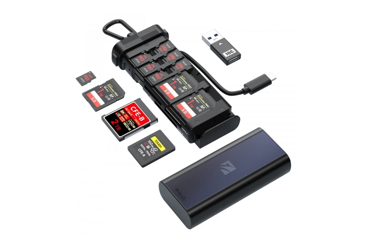 Freewell Pro Reader - rychločtečka karet je profesionální čtečka karet z hliníku pro CFexpress Type A/B, SD (UHS-I/II) a microSD. Přenosová rychlost až 10 Gb/s díky USB 3.2 Gen 2. Kompatibilní s Windows, macOS, Linuxem, Androidem a iOS. Rozměry: 143,7 × 57,8 × 26,2 mm.