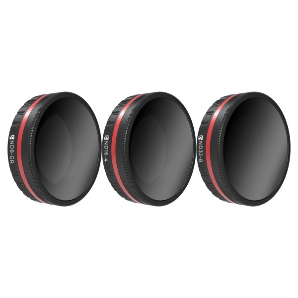 Sada tří filtrů Freewell pro akční kameru DJI Osmo Action (1. generace). Sada obsahuje filtry ND8-GR, ND16-4, ND32-8.
