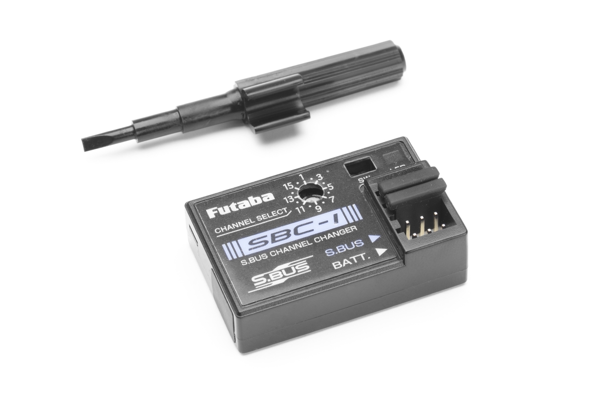 SBC-1 je jednoduchý programátor pro nastavování kanálu pro S.BUS serva nebo výstupy S.BUS dekodéru SBD-1. Kanál S.BUS serva (1-16) se volí otočným přepínačem, činnost programátoru signalizuje LED dioda. SBC-1 není možno používat pro nastavování S.BUS2 serv.