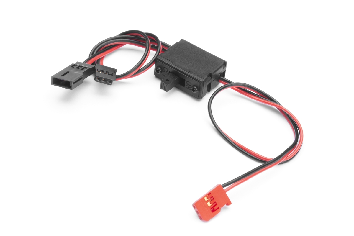 Robustní páčkový vypínač pro přijímačové akumulátory s nabíjecím kabelem. Servokonektory Futaba.