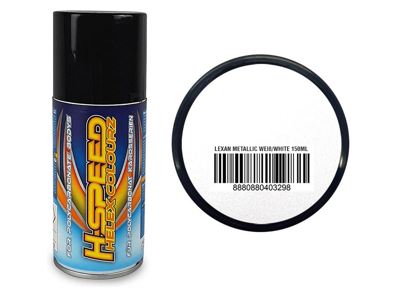 H-Speed metalická bílá akrylová barva ve spreji je vhodná pro širokou škálu materiálů včetně lexanových karosérií. Výhodou je krátká doba schnutí, výborné krytí a odolnost proti poškrábání. Obsah 150 ml.