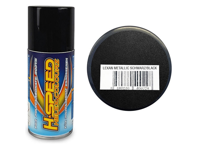 H-Speed metalická černá akrylová barva ve spreji je vhodná pro širokou škálu materiálů (plasty kromě nylonu, kovy, dřevo, sklo, keramika, papír, EPP, EPS). Barvy nezpůsobují korozi lexanu! Akrylové barvy rychle schnou, výborně kryjí a jsou odolné proti poškrábání.