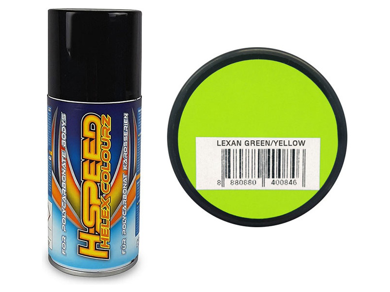 H-Speed zeleno-žlutá akrylová barva ve spreji je vhodná pro širokou škálu materiálů včetně lexanových karosérií. Výhodou je krátká doba schnutí, výborné krytí a odolnost proti poškrábání. Obsah 150 ml.