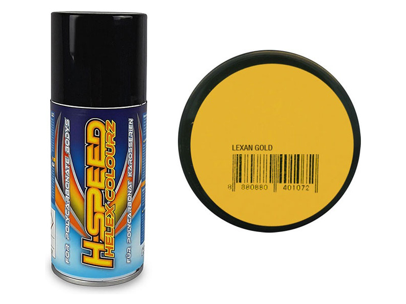 H-Speed zlatá akrylová barva ve spreji je vhodná pro širokou škálu materiálů včetně lexanových karosérií. Výhodou je krátká doba schnutí, výborné krytí a odolnost proti poškrábání. Obsah 150 ml.