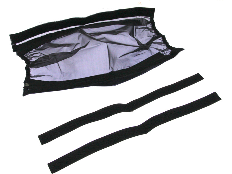 Nasaďte H-Speed protiprachový kryt seshora na podvozek a přehněte lemy na bok nebo pod šasí. Srovnejte a upravte polohu krytu a aplikujte přiloženou oboustrannou pásku suchého zipu přilepením na šasí. Pomocí zdrhovadla na obou stranách můžete protiprachový kryt odejmout.