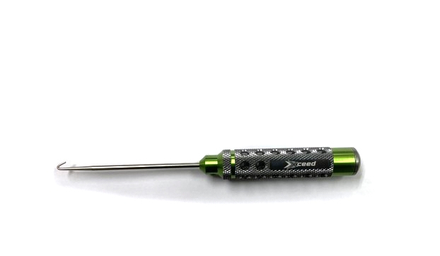 Odstraňte výfukovou pružinu nebo sponky. Toto je nová řada vysoce kvalitních přesných nástrojů Xceed RC s novým vzhledem a novým designem. Je lehčí než stará verze kvůli otvorům v rukojeti. Díky eloxované duté hliníkové rukojeti (zelená barva a šedý kov), povrch byl rýhovaný pro lepší uchopení v ruce, zatímco vrchní část má otočnou koncovku pro lepší pohodlí při používání.