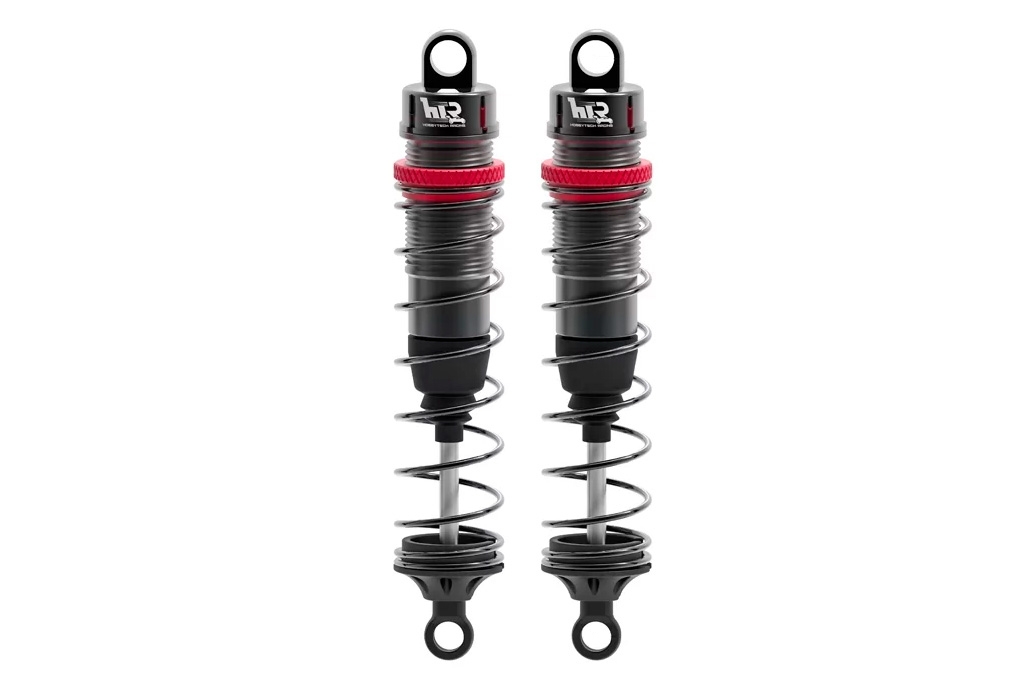 Celohliníkové olejové tlumiče pro modely 1/10 a podobné, Celková délka mezi čepy je 105mm, průměr pístku je 13mm. Sada obsahuje: tři páry pružin: měkké, střední a tvrdé; horní i spodní upevňovací materiál.
