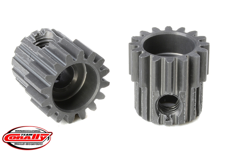 Krátké provedení, materiál tvrzený hliník 7075 T6, 16 zubů, modul ozubení 48DP. Pro hřídel motoru o průměru 3.17 mm (1/8 in). Pastorky TEAM CORALLY jsou vyráběny frézováním a následně tvrzeny, čímž je zajištěna vysoká přesnost ozubení. Všechny pastorky TEAM CORALLY jsou vyrobeny v EU.