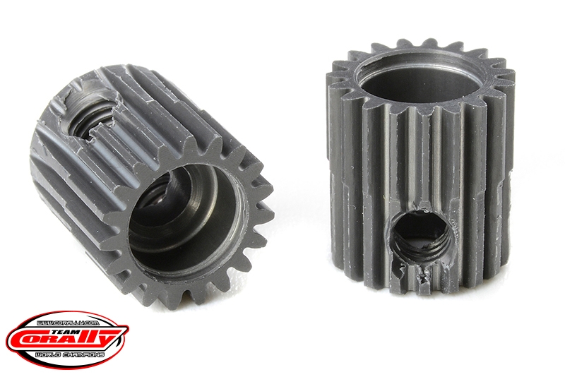 Krátké provedení, materiál tvrzený hliník 7075 T6, 19 zubů, modul ozubení 64DP. Pro hřídel motoru o průměru 3.17 mm (1/8 in). Pastorky TEAM CORALLY jsou vyráběny frézováním a následně tvrzeny, čímž je zajištěna vysoká přesnost ozubení. Všechny pastorky TEAM CORALLY jsou vyrobeny v EU.