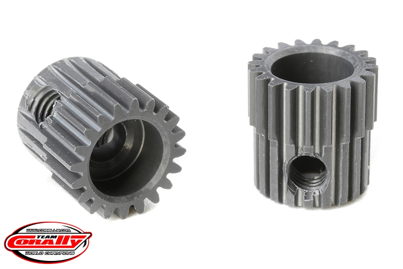 Krátké provedení, materiál tvrzený hliník 7075 T6, 20 zubů, modul ozubení 64DP. Pro hřídel motoru o průměru 3.17 mm (1/8 in). Pastorky TEAM CORALLY jsou vyráběny frézováním a následně tvrzeny, čímž je zajištěna vysoká přesnost ozubení. Všechny pastorky TEAM CORALLY jsou vyrobeny v EU.