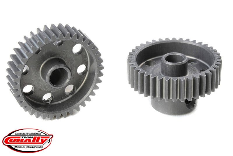 Krátké provedení, materiál tvrzený hliník 7075 T6, 38 zubů, modul ozubení 64DP. Pro hřídel motoru o průměru 3.17 mm (1/8 in). Pastorky TEAM CORALLY jsou vyráběny frézováním a následně tvrzeny, čímž je zajištěna vysoká přesnost ozubení. Všechny pastorky TEAM CORALLY jsou vyrobeny v EU.