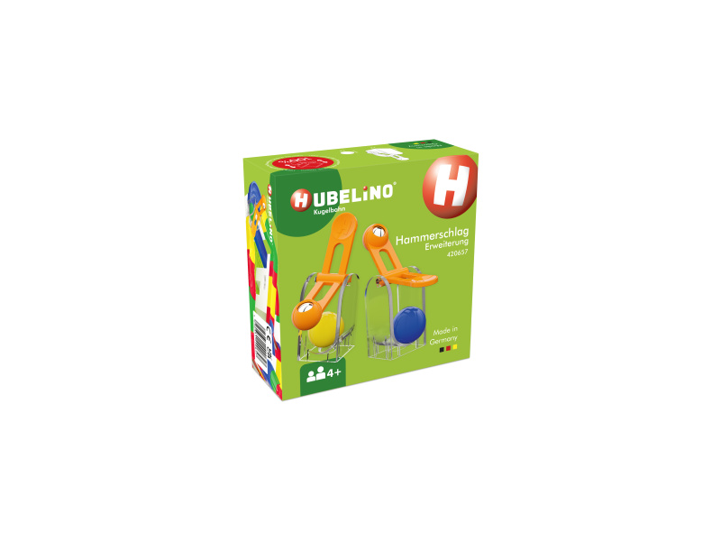 Rozšíření pro kuličkové dráhy HUBELINO. Gravitační kladivo dodá kuličce novou hybnost a posune ji v kuličkové dráze velkou rychlostí dále. Balení obsahuje: 2 gravitační kladiva a 4 kuličky.