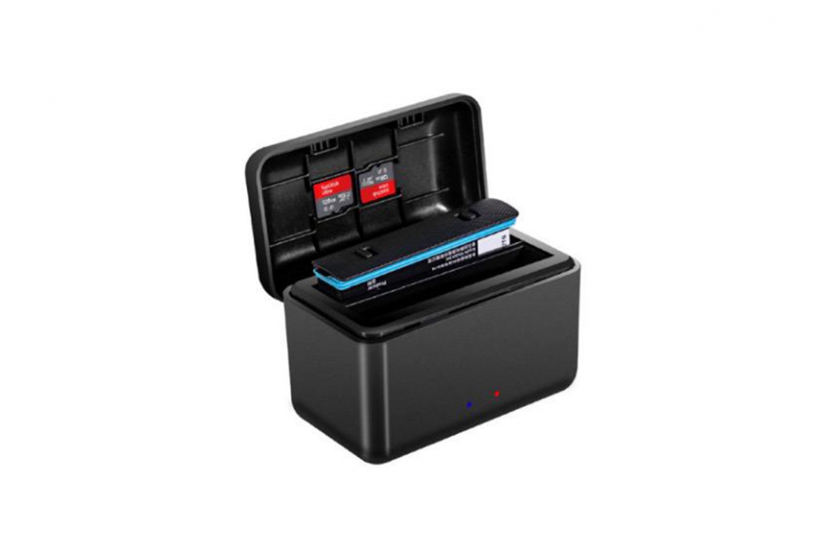 2v1 nabíjecí box pro Insta360 X4 s hmotností 60 g a rozměry 7,8 × 5,6 × 4,5 cm. Podporuje vstup 12V/3A, 9V/3A, 5V/3A a výstup 4,4V/1,5A. Nabíjí až dvě baterie současně s přibližnou dobou nabíjení 90 minut. Kompaktní a efektivní řešení pro rychlé a pohodlné nabíjení na cestách.