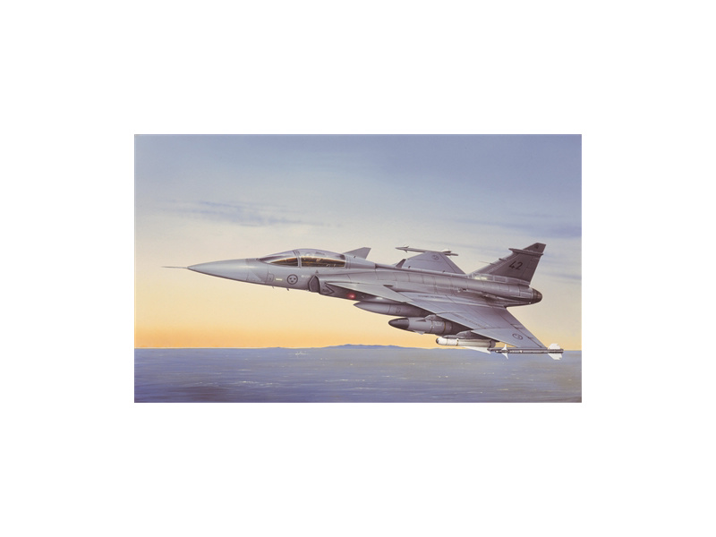 Plastikový model Italeri 2638 - letadlo Saab JAS-39A Gripen v měřítku 1:48 ke slepení. Délka modelu 300 mm, obtížnost 3. Balení obsahuje SKVĚLÉ OBTISKY PRO 2 VERZE.